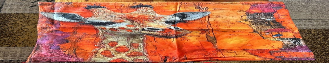 I have for sale - Mostly Giraffes .....- make up bags, Tote bags, aprons, bags, glasses case, shoulder bag, rucksack wooden giraffes, scarves, earrings, and cushion covers.