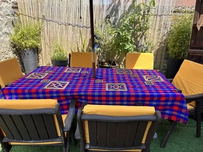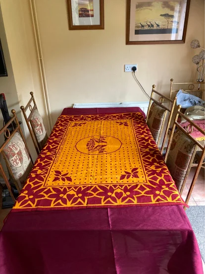 Lovely Kangas worn by the ladies tied at the neck. These make lovely tablecloths as well as wall hangings. Royal Mail tracked postage £3.39