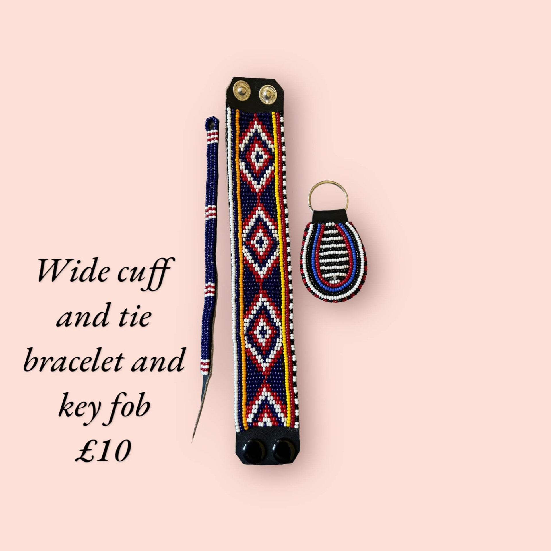 Tie bracelet, Wide cuff 22 cm long x 4 cm wide and keyfob